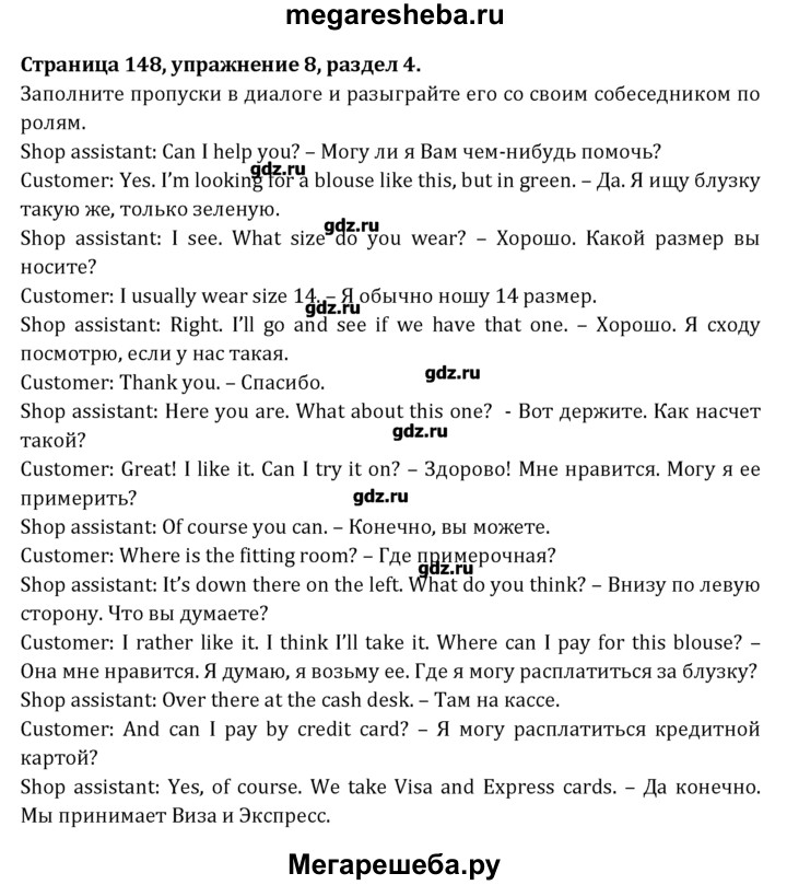 Подробный решебник (ГДЗ) по Английскому языку за 8 (восьмой) класс Student's Book - готовый ответ раздел 4 - 8. Авторы учебника: Афанасьева, Михеева, Углубленный уровень. Издательство: Просвещение 2014.
