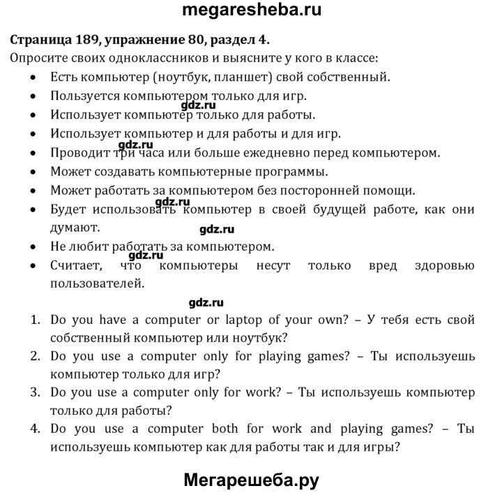 Подробный решебник (ГДЗ) по Английскому языку за 8 (восьмой) класс Student's Book - готовый ответ раздел 4 - 80. Авторы учебника: Афанасьева, Михеева, Углубленный уровень. Издательство: Просвещение 2014.