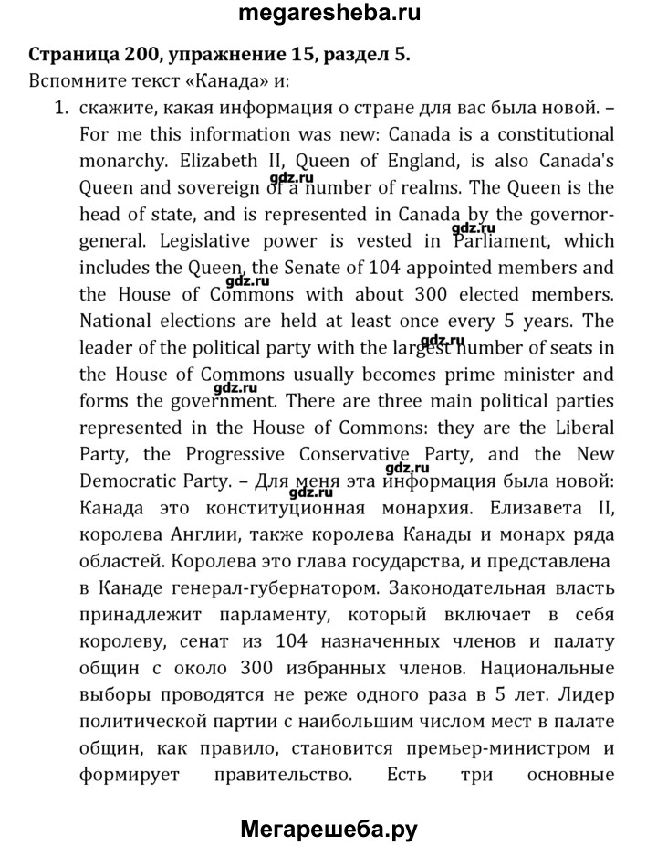 Подробный решебник (ГДЗ) по Английскому языку за 8 (восьмой) класс Student's Book - готовый ответ раздел 5 - 15. Авторы учебника: Афанасьева, Михеева, Углубленный уровень. Издательство: Просвещение 2014.