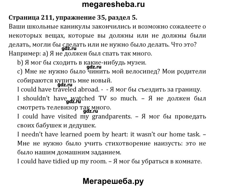 Подробный решебник (ГДЗ) по Английскому языку за 8 (восьмой) класс Student's Book - готовый ответ раздел 5 - 35. Авторы учебника: Афанасьева, Михеева, Углубленный уровень. Издательство: Просвещение 2014.