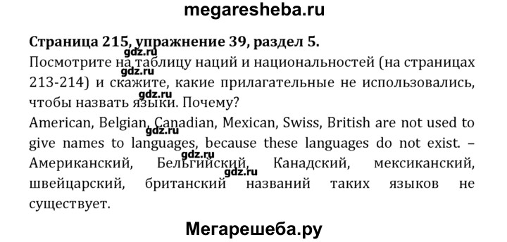 Подробный решебник (ГДЗ) по Английскому языку за 8 (восьмой) класс Student's Book - готовый ответ раздел 5 - 39. Авторы учебника: Афанасьева, Михеева, Углубленный уровень. Издательство: Просвещение 2014.