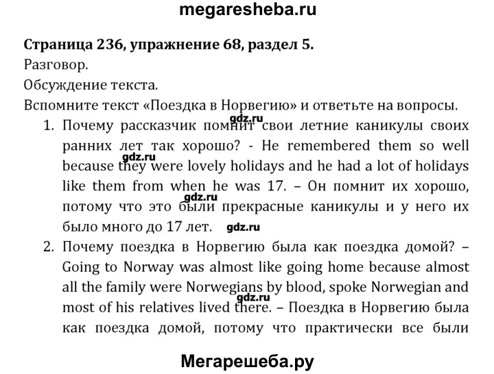 Подробный решебник (ГДЗ) по Английскому языку за 8 (восьмой) класс Student's Book - готовый ответ раздел 5 - 68. Авторы учебника: Афанасьева, Михеева, Углубленный уровень. Издательство: Просвещение 2014.