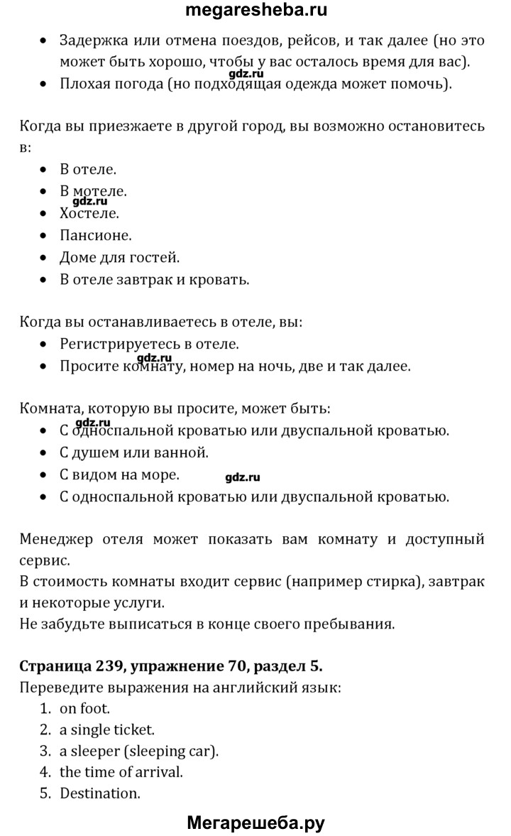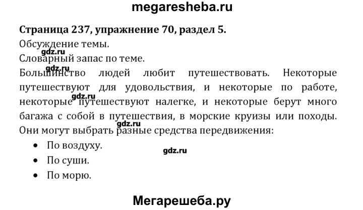 Подробный решебник (ГДЗ) по Английскому языку за 8 (восьмой) класс Student's Book - готовый ответ раздел 5 - 70. Авторы учебника: Афанасьева, Михеева, Углубленный уровень. Издательство: Просвещение 2014.
