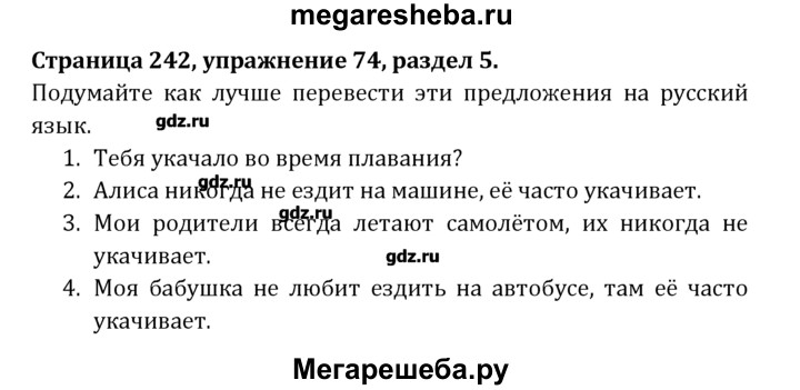 Подробный решебник (ГДЗ) по Английскому языку за 8 (восьмой) класс Student's Book - готовый ответ раздел 5 - 74. Авторы учебника: Афанасьева, Михеева, Углубленный уровень. Издательство: Просвещение 2014.