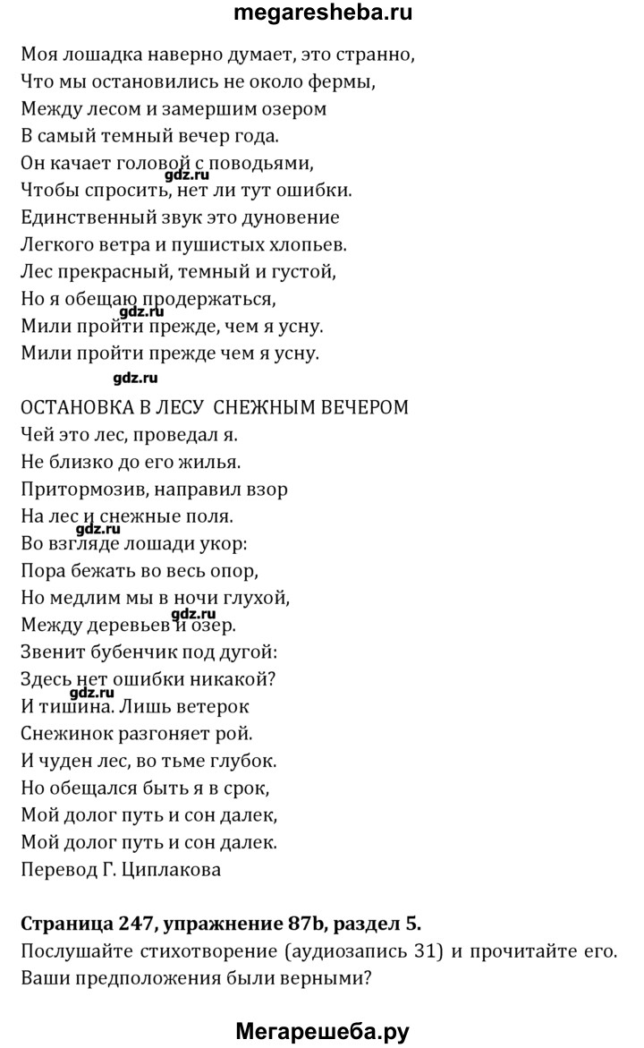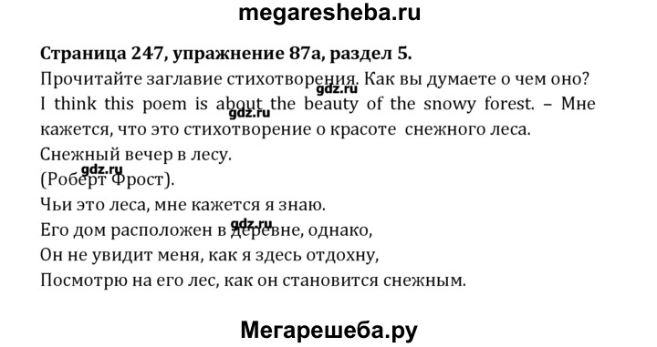 Подробный решебник (ГДЗ) по Английскому языку за 8 (восьмой) класс Student's Book - готовый ответ раздел 5 - 87. Авторы учебника: Афанасьева, Михеева, Углубленный уровень. Издательство: Просвещение 2014.