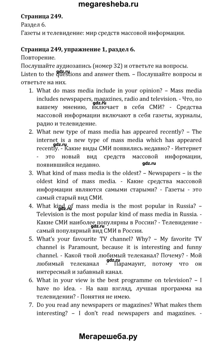 Подробный решебник (ГДЗ) по Английскому языку за 8 (восьмой) класс Student's Book - готовый ответ раздел 6 - 1. Авторы учебника: Афанасьева, Михеева, Углубленный уровень. Издательство: Просвещение 2014.