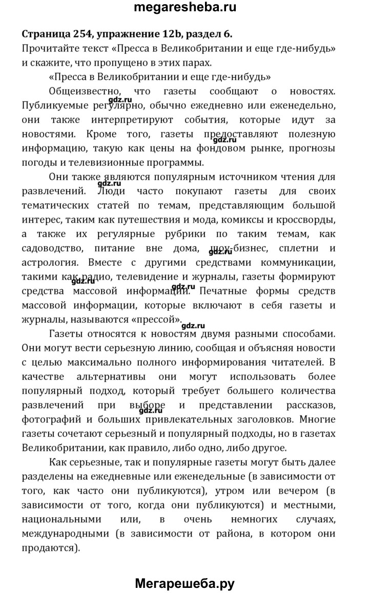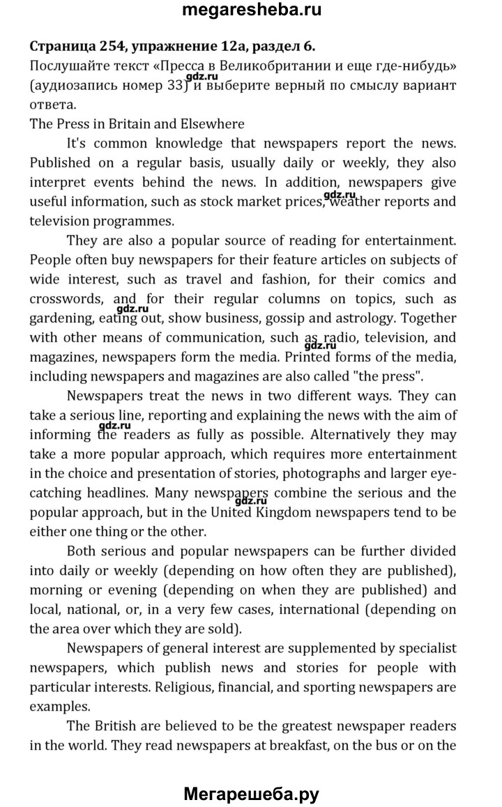 Подробный решебник (ГДЗ) по Английскому языку за 8 (восьмой) класс Student's Book - готовый ответ раздел 6 - 12. Авторы учебника: Афанасьева, Михеева, Углубленный уровень. Издательство: Просвещение 2014.