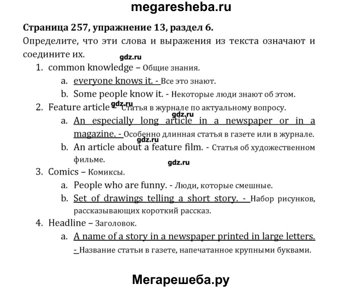 Подробный решебник (ГДЗ) по Английскому языку за 8 (восьмой) класс Student's Book - готовый ответ раздел 6 - 13. Авторы учебника: Афанасьева, Михеева, Углубленный уровень. Издательство: Просвещение 2014.