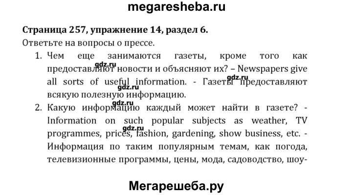 Подробный решебник (ГДЗ) по Английскому языку за 8 (восьмой) класс Student's Book - готовый ответ раздел 6 - 14. Авторы учебника: Афанасьева, Михеева, Углубленный уровень. Издательство: Просвещение 2014.