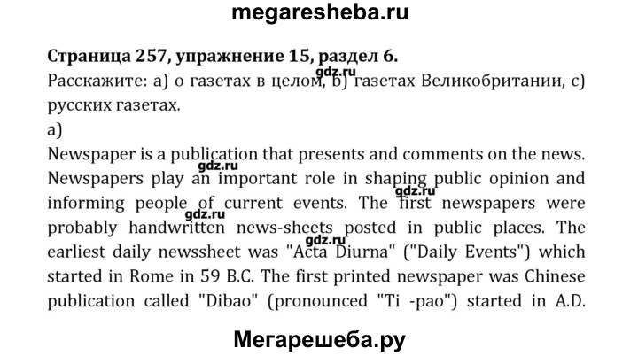 Подробный решебник (ГДЗ) по Английскому языку за 8 (восьмой) класс Student's Book - готовый ответ раздел 6 - 15. Авторы учебника: Афанасьева, Михеева, Углубленный уровень. Издательство: Просвещение 2014.