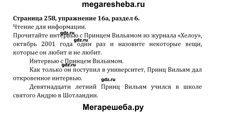 Подробный решебник (ГДЗ) по Английскому языку за 8 (восьмой) класс Student's Book - готовый ответ раздел 6 - 16. Авторы учебника: Афанасьева, Михеева, Углубленный уровень. Издательство: Просвещение 2014.