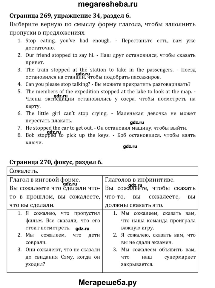 Подробный решебник (ГДЗ) по Английскому языку за 8 (восьмой) класс Student's Book - готовый ответ раздел 6 - 34. Авторы учебника: Афанасьева, Михеева, Углубленный уровень. Издательство: Просвещение 2014.