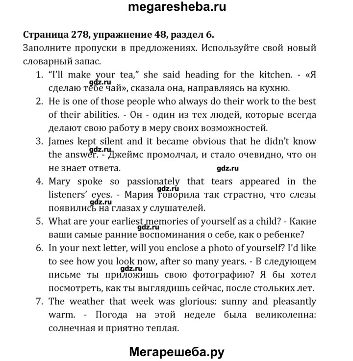 Подробный решебник (ГДЗ) по Английскому языку за 8 (восьмой) класс Student's Book - готовый ответ раздел 6 - 48. Авторы учебника: Афанасьева, Михеева, Углубленный уровень. Издательство: Просвещение 2014.