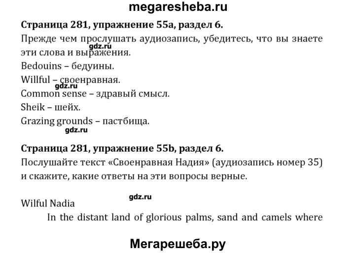 Подробный решебник (ГДЗ) по Английскому языку за 8 (восьмой) класс Student's Book - готовый ответ раздел 6 - 55. Авторы учебника: Афанасьева, Михеева, Углубленный уровень. Издательство: Просвещение 2014.