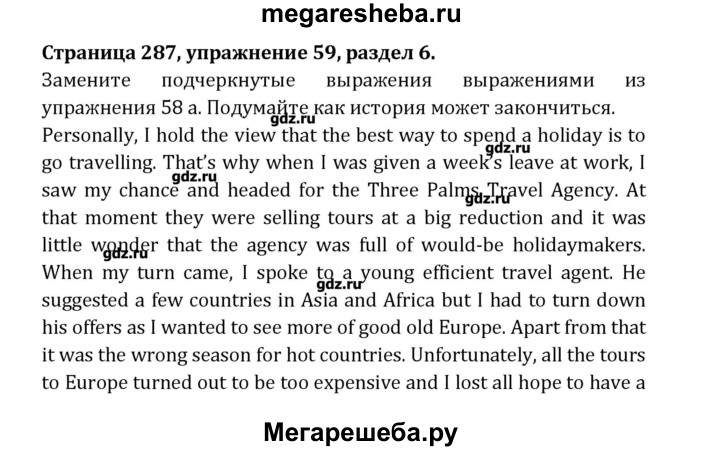 Подробный решебник (ГДЗ) по Английскому языку за 8 (восьмой) класс Student's Book - готовый ответ раздел 6 - 59. Авторы учебника: Афанасьева, Михеева, Углубленный уровень. Издательство: Просвещение 2014.