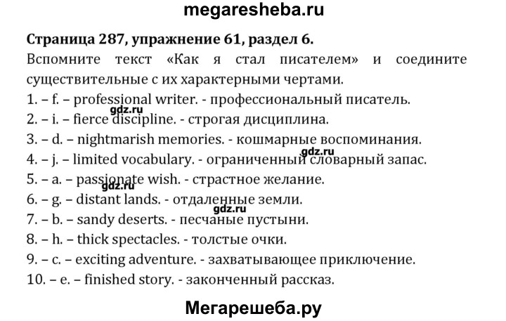 Подробный решебник (ГДЗ) по Английскому языку за 8 (восьмой) класс Student's Book - готовый ответ раздел 6 - 61. Авторы учебника: Афанасьева, Михеева, Углубленный уровень. Издательство: Просвещение 2014.