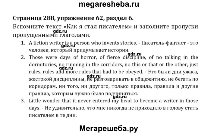 Подробный решебник (ГДЗ) по Английскому языку за 8 (восьмой) класс Student's Book - готовый ответ раздел 6 - 62. Авторы учебника: Афанасьева, Михеева, Углубленный уровень. Издательство: Просвещение 2014.
