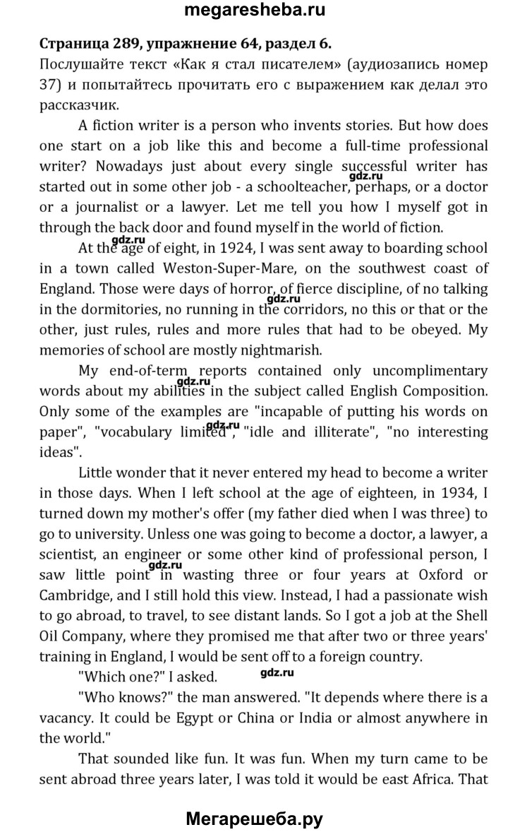 Подробный решебник (ГДЗ) по Английскому языку за 8 (восьмой) класс Student's Book - готовый ответ раздел 6 - 64. Авторы учебника: Афанасьева, Михеева, Углубленный уровень. Издательство: Просвещение 2014.