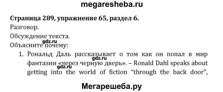 Подробный решебник (ГДЗ) по Английскому языку за 8 (восьмой) класс Student's Book - готовый ответ раздел 6 - 65. Авторы учебника: Афанасьева, Михеева, Углубленный уровень. Издательство: Просвещение 2014.