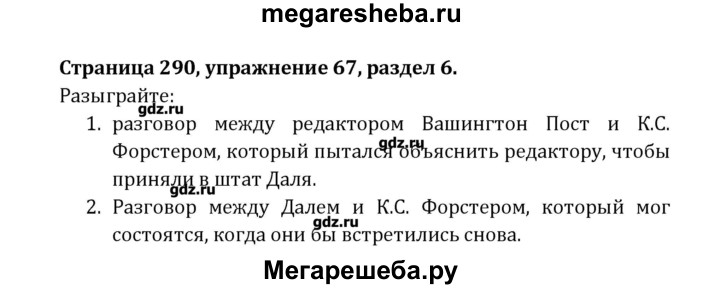 Подробный решебник (ГДЗ) по Английскому языку за 8 (восьмой) класс Student's Book - готовый ответ раздел 6 - 67. Авторы учебника: Афанасьева, Михеева, Углубленный уровень. Издательство: Просвещение 2014.
