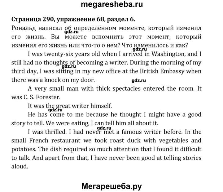 Подробный решебник (ГДЗ) по Английскому языку за 8 (восьмой) класс Student's Book - готовый ответ раздел 6 - 68. Авторы учебника: Афанасьева, Михеева, Углубленный уровень. Издательство: Просвещение 2014.