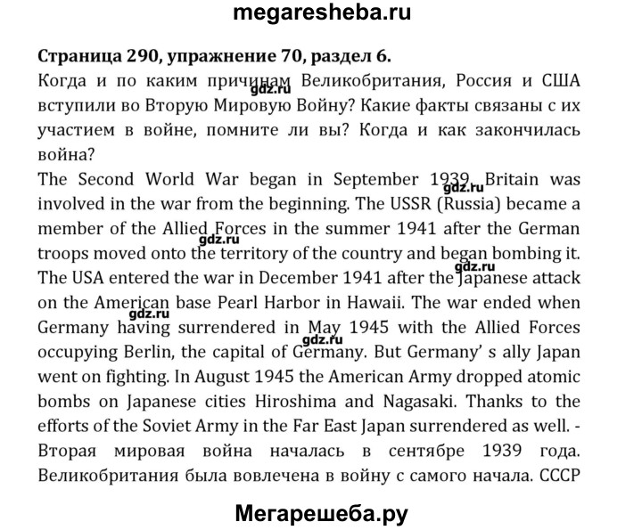 Подробный решебник (ГДЗ) по Английскому языку за 8 (восьмой) класс Student's Book - готовый ответ раздел 6 - 70. Авторы учебника: Афанасьева, Михеева, Углубленный уровень. Издательство: Просвещение 2014.