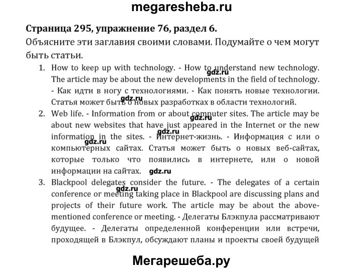 Подробный решебник (ГДЗ) по Английскому языку за 8 (восьмой) класс Student's Book - готовый ответ раздел 6 - 76. Авторы учебника: Афанасьева, Михеева, Углубленный уровень. Издательство: Просвещение 2014.