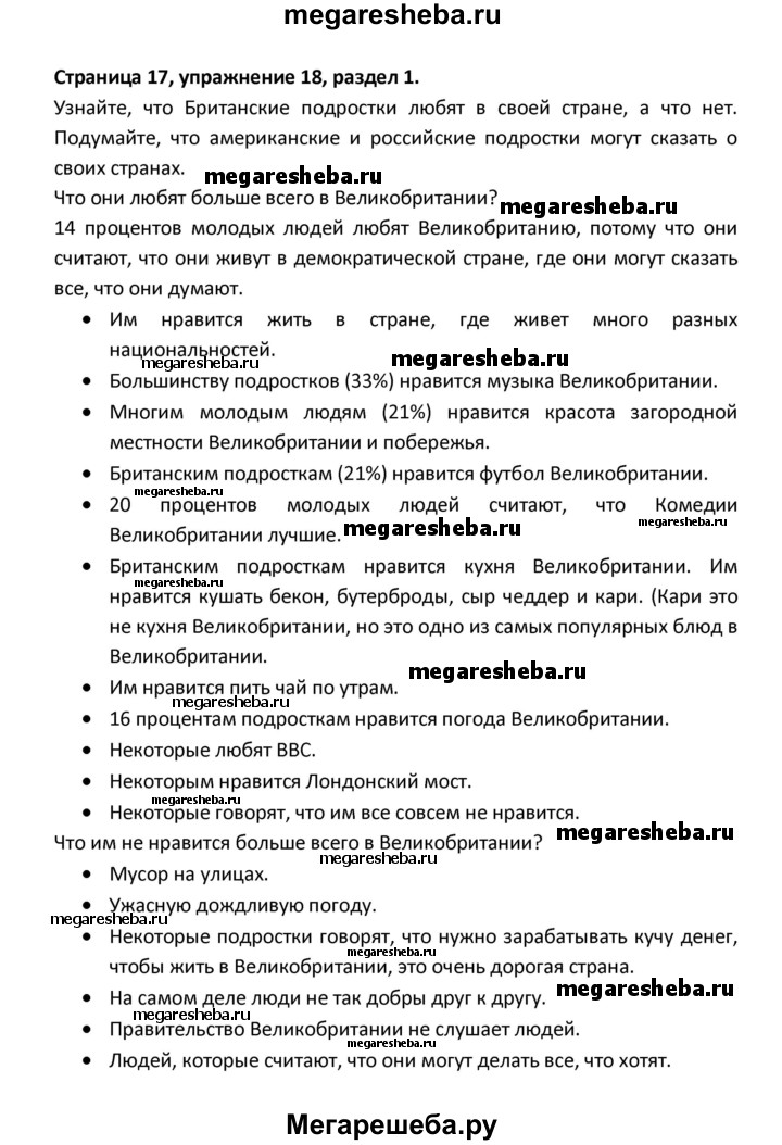 Подробный решебник (ГДЗ) по Английскому языку за 8 (восьмой) класс рабочая тетрадь новый курс (4-ый год обучения) - готовый ответ часть 1. страница - 17. Авторы учебника: Афанасьева, Михеева. Издательство: Дрофа 2017.