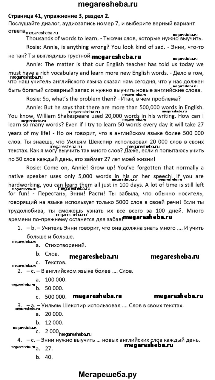 ГДЗ по английскому языку 8 класс Афанасьева рабочая тетрадь новый курс (4-ый год обучения) часть 1. страница - 41