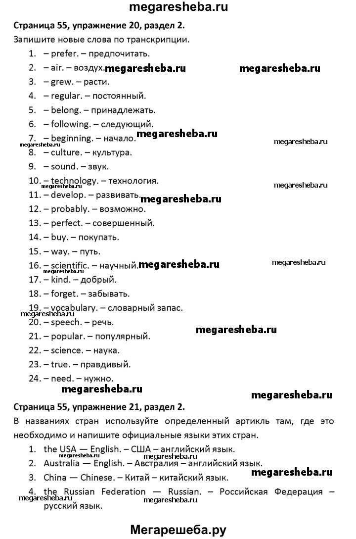 ГДЗ по английскому языку 8 класс Афанасьева рабочая тетрадь новый курс (4-ый год обучения) часть 1. страница - 55