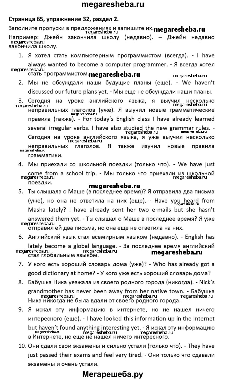 ГДЗ по английскому языку 8 класс Афанасьева рабочая тетрадь новый курс (4-ый год обучения) часть 1. страница - 65
