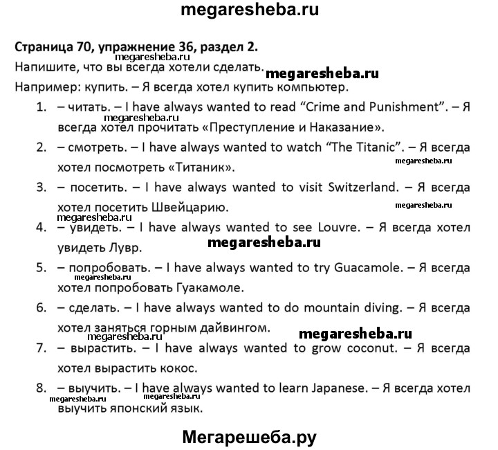ГДЗ по английскому языку 8 класс Афанасьева рабочая тетрадь новый курс (4-ый год обучения) часть 1. страница - 70