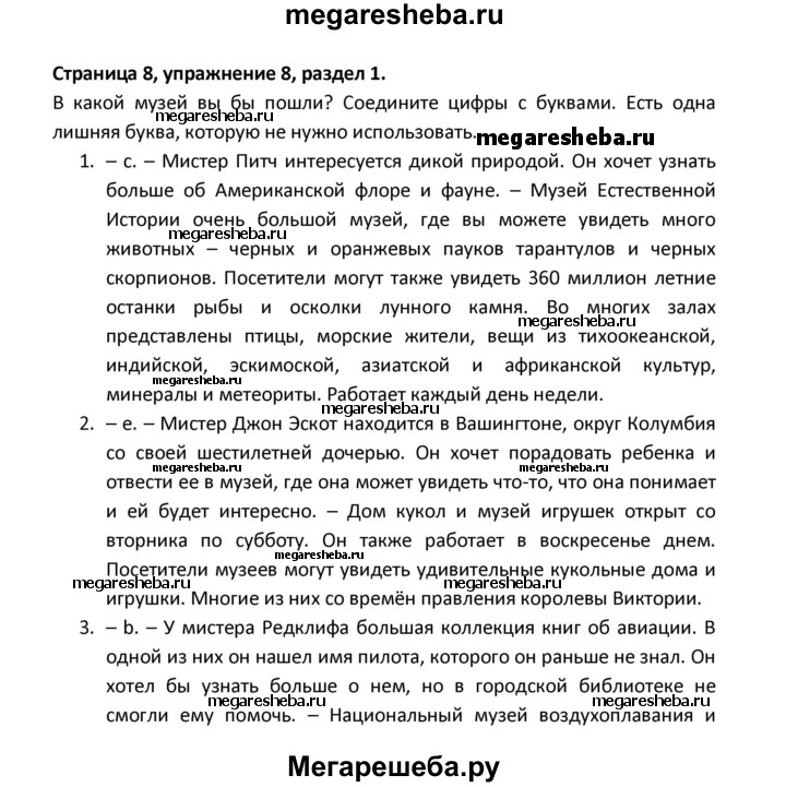 Подробный решебник (ГДЗ) по Английскому языку за 8 (восьмой) класс рабочая тетрадь новый курс (4-ый год обучения) - готовый ответ часть 1. страница - 8. Авторы учебника: Афанасьева, Михеева. Издательство: Дрофа 2017.