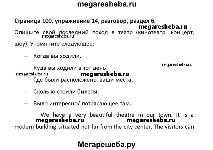 Подробный решебник (ГДЗ) по Английскому языку за 8 (восьмой) класс рабочая тетрадь новый курс (4-ый год обучения) - готовый ответ часть 2. страница - 100. Авторы учебника: Афанасьева, Михеева. Издательство: Дрофа 2017.