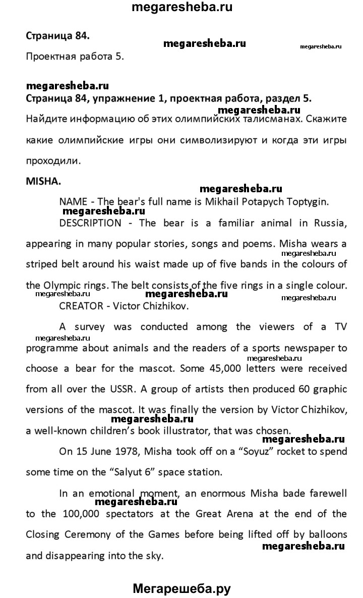 ГДЗ по английскому языку 8 класс Афанасьева рабочая тетрадь новый курс (4-ый год обучения) часть 2. страница - 84