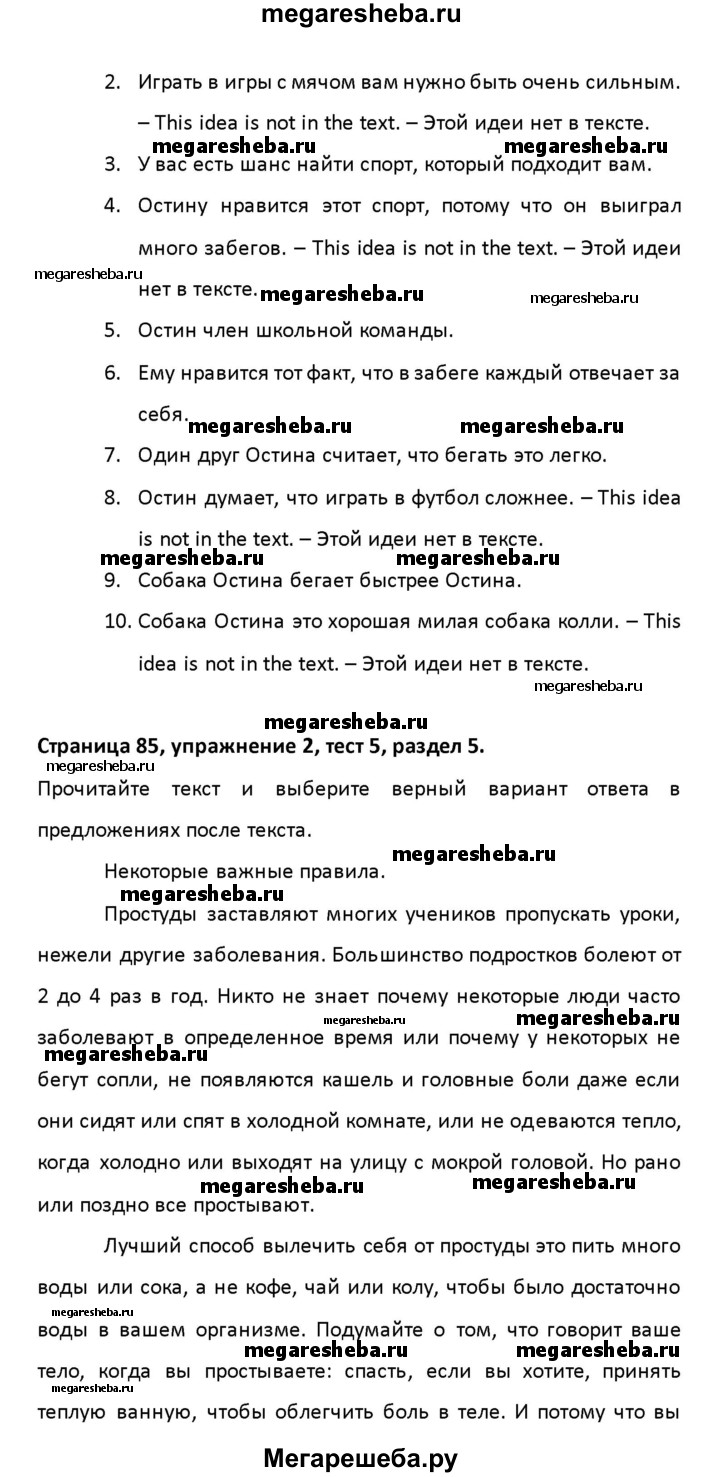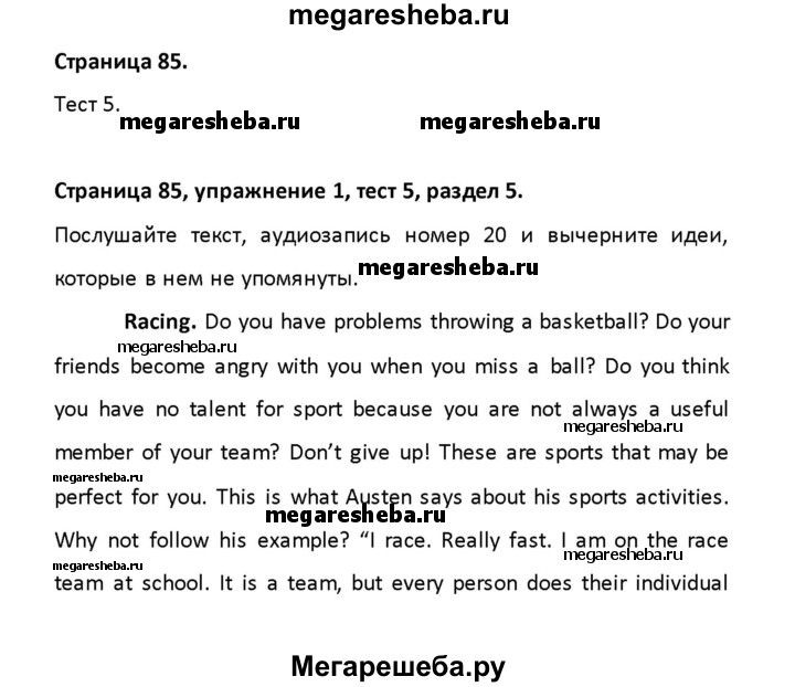 Подробный решебник (ГДЗ) по Английскому языку за 8 (восьмой) класс рабочая тетрадь новый курс (4-ый год обучения) - готовый ответ часть 2. страница - 85. Авторы учебника: Афанасьева, Михеева. Издательство: Дрофа 2017.
