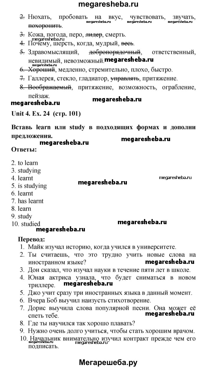 ГДЗ по английскому языку 8 класс Афанасьева лексико-грамматический практикум rainbow страница - 101