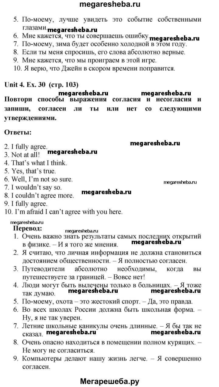 Подробный решебник (ГДЗ) по Английскому языку за 8 (восьмой) класс лексико-грамматический практикум rainbow - готовый ответ страница - 103. Авторы учебника: Афанасьева, Михеева, Баранова. Издательство: Дрофа 2016-2024.