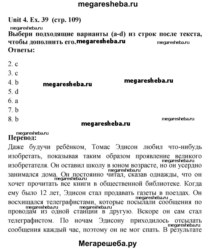 Подробный решебник (ГДЗ) по Английскому языку за 8 (восьмой) класс лексико-грамматический практикум rainbow - готовый ответ страница - 109. Авторы учебника: Афанасьева, Михеева, Баранова. Издательство: Дрофа 2016-2024.