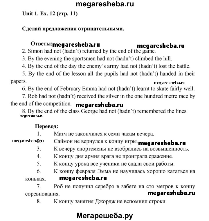 Подробный решебник (ГДЗ) по Английскому языку за 8 (восьмой) класс лексико-грамматический практикум rainbow - готовый ответ страница - 11. Авторы учебника: Афанасьева, Михеева, Баранова. Издательство: Дрофа 2016-2024.