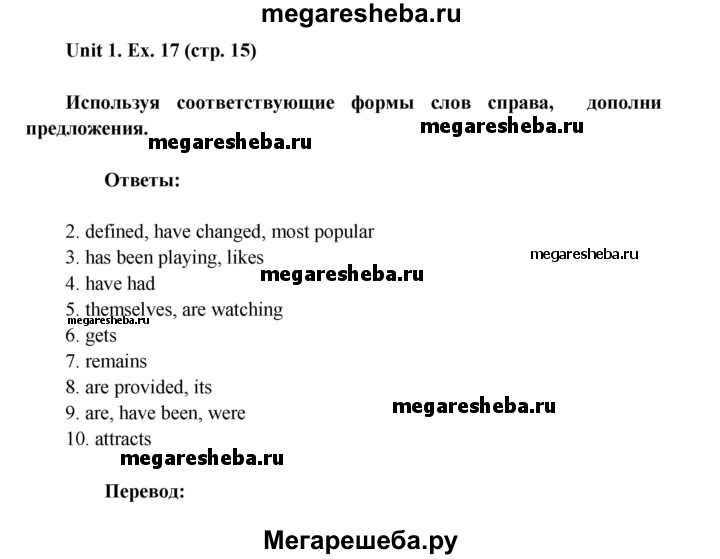 Подробный решебник (ГДЗ) по Английскому языку за 8 (восьмой) класс лексико-грамматический практикум rainbow - готовый ответ страница - 15. Авторы учебника: Афанасьева, Михеева, Баранова. Издательство: Дрофа 2016-2024.