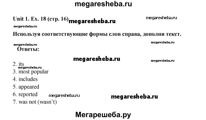 Подробный решебник (ГДЗ) по Английскому языку за 8 (восьмой) класс лексико-грамматический практикум rainbow - готовый ответ страница - 16. Авторы учебника: Афанасьева, Михеева, Баранова. Издательство: Дрофа 2016-2024.