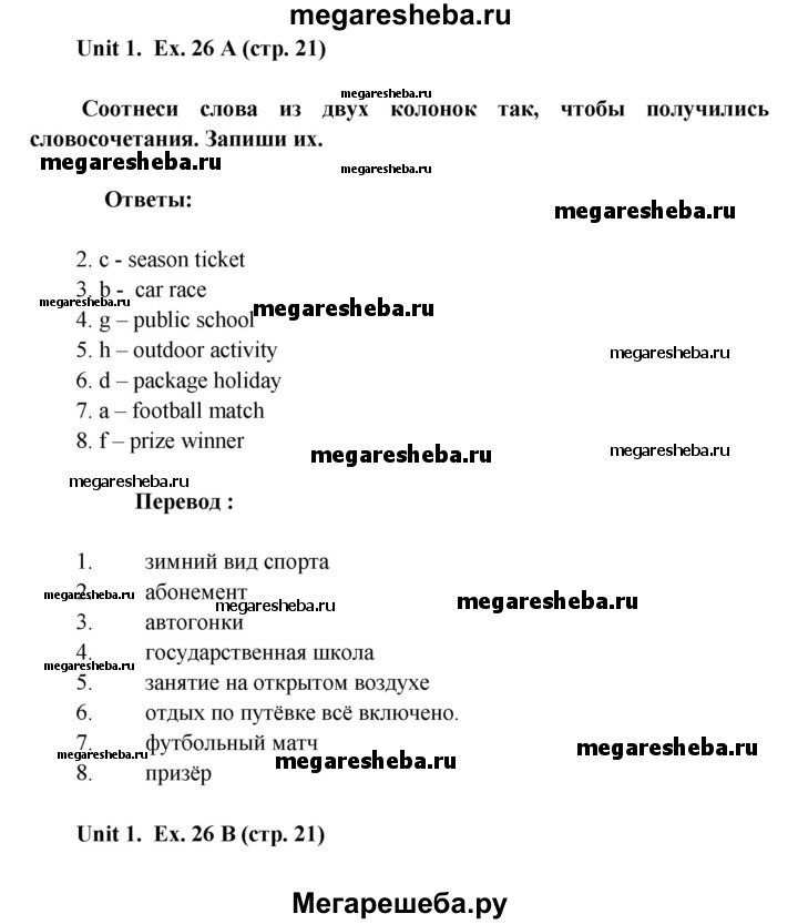 ГДЗ по английскому языку 8 класс Афанасьева лексико-грамматический практикум rainbow страница - 21