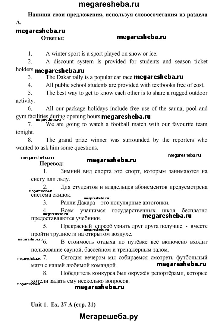 Подробный решебник (ГДЗ) по Английскому языку за 8 (восьмой) класс лексико-грамматический практикум rainbow - готовый ответ страница - 21. Авторы учебника: Афанасьева, Михеева, Баранова. Издательство: Дрофа 2016-2024.