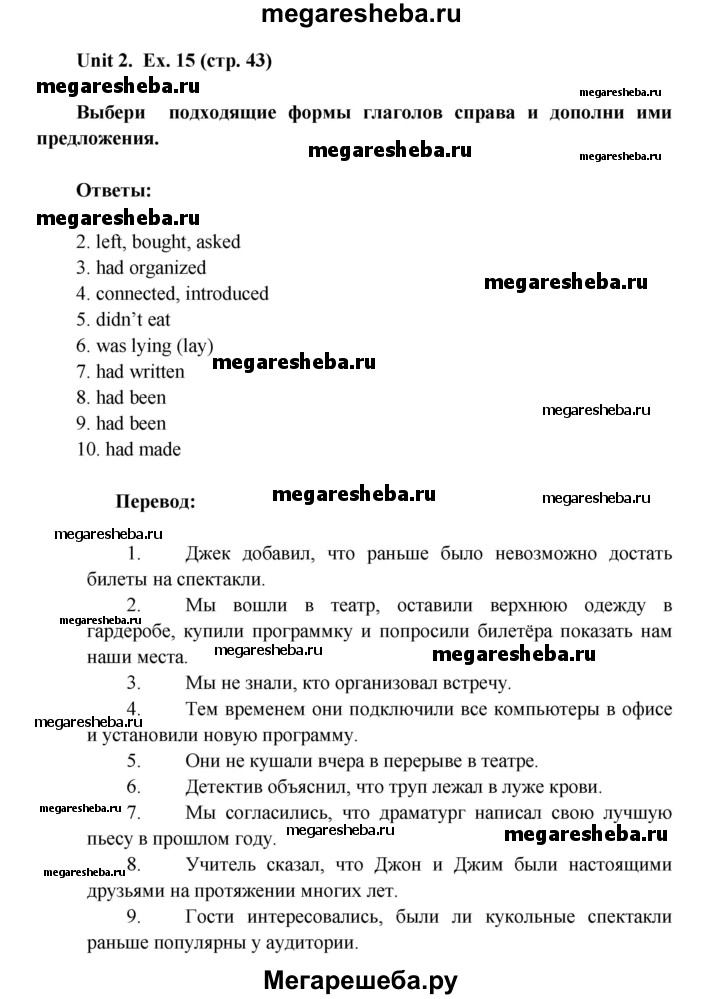 ГДЗ по английскому языку 8 класс Афанасьева лексико-грамматический практикум rainbow страница - 43