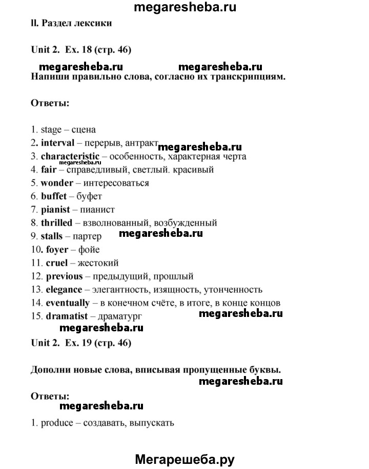 Подробный решебник (ГДЗ) по Английскому языку за 8 (восьмой) класс лексико-грамматический практикум rainbow - готовый ответ страница - 46. Авторы учебника: Афанасьева, Михеева, Баранова. Издательство: Дрофа 2016-2024.