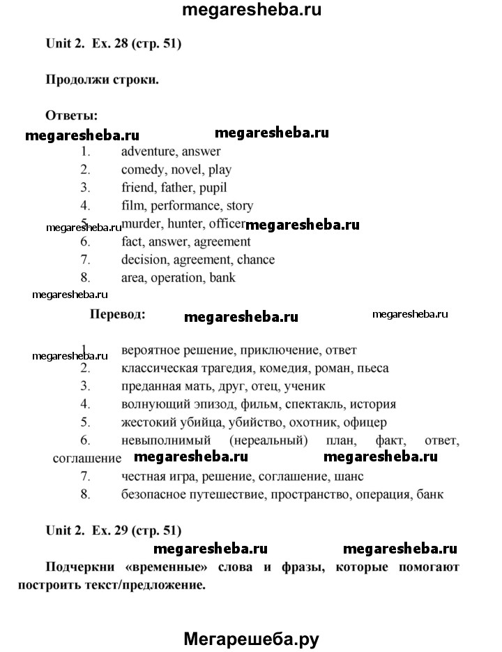 Подробный решебник (ГДЗ) по Английскому языку за 8 (восьмой) класс лексико-грамматический практикум rainbow - готовый ответ страница - 51. Авторы учебника: Афанасьева, Михеева, Баранова. Издательство: Дрофа 2016-2024.