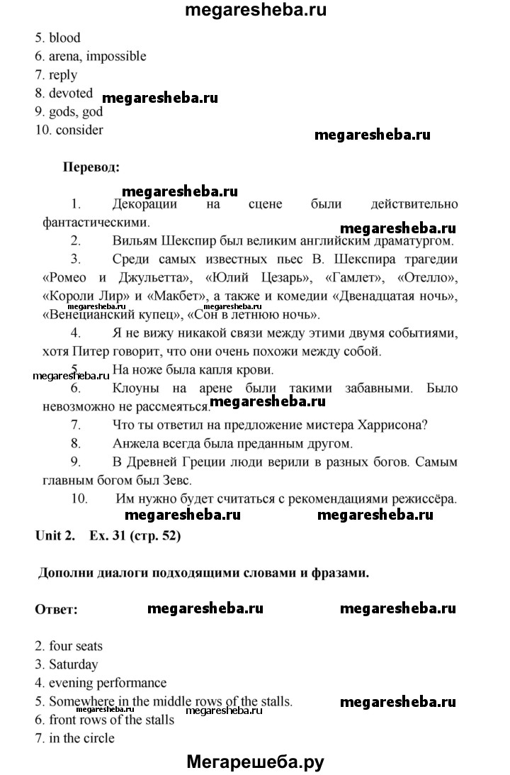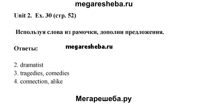 Подробный решебник (ГДЗ) по Английскому языку за 8 (восьмой) класс лексико-грамматический практикум rainbow - готовый ответ страница - 52. Авторы учебника: Афанасьева, Михеева, Баранова. Издательство: Дрофа 2016-2024.