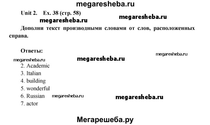 Подробный решебник (ГДЗ) по Английскому языку за 8 (восьмой) класс лексико-грамматический практикум rainbow - готовый ответ страница - 58. Авторы учебника: Афанасьева, Михеева, Баранова. Издательство: Дрофа 2016-2024.