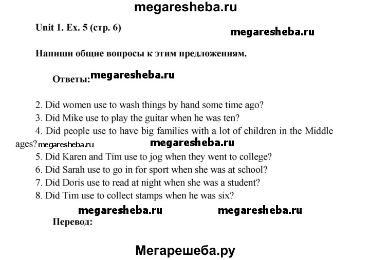 Подробный решебник (ГДЗ) по Английскому языку за 8 (восьмой) класс лексико-грамматический практикум rainbow - готовый ответ страница - 6. Авторы учебника: Афанасьева, Михеева, Баранова. Издательство: Дрофа 2016-2024.